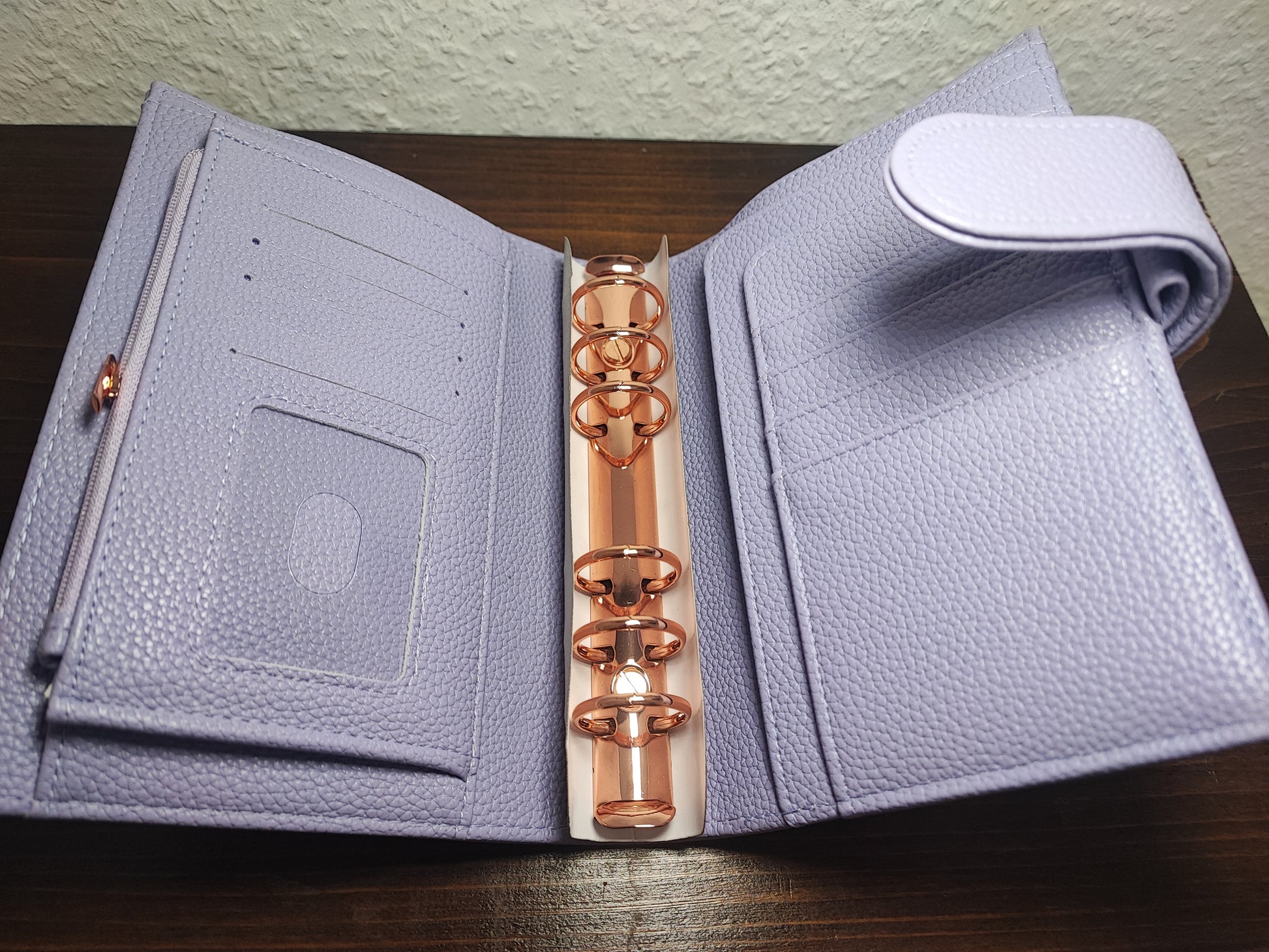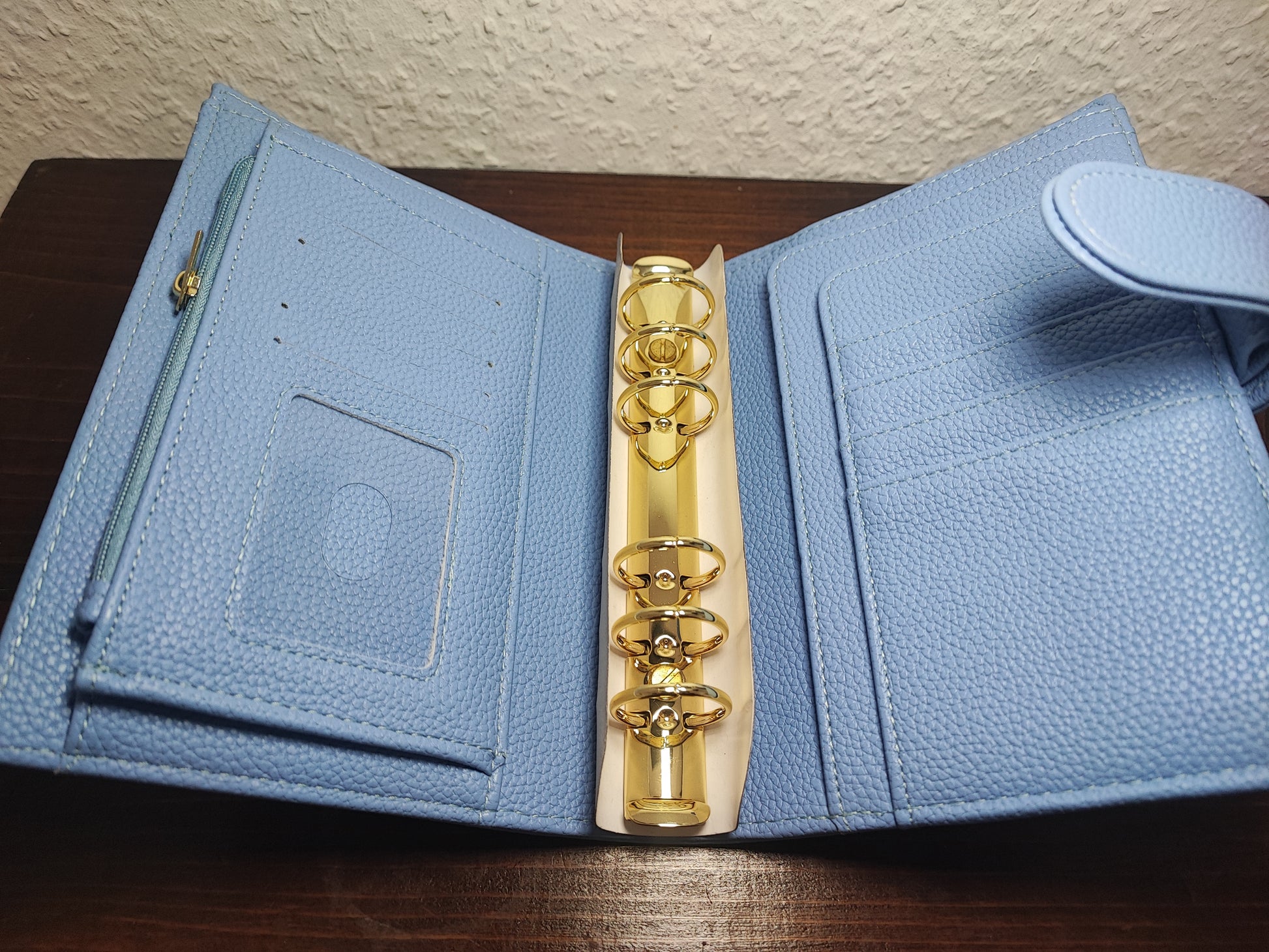 Der Binder verfügt über große Ringe, ganz viel Stauraum, einem großen Fach und ein Reißverschluss auf der Innenseite des Binders.