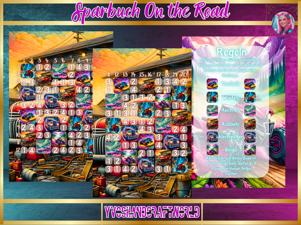 Besteht aus 6 Challenges und einem großen Bingo dazu alles zusammen gebunden mit Spiralbindung oder gelocht für den A6 Binder.