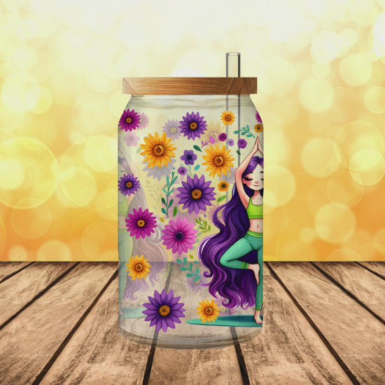 Das Trinkglas aus Glas kommt mit einem Bambusdeckel und einem Glasstrohhalm und das Trinkglas aus Kunststoff kommt mit einem Kunststoffdeckel und Kunststoffstrohhalm.
