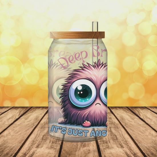 Das Trinkglas aus Glas kommt mit einem Bambusdeckel und einem Glasstrohhalm und das Trinkglas aus Kunststoff kommt mit einem Kunststoffdeckel und Kunststoffstrohhalm.