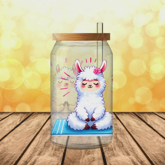 Das Trinkglas aus Glas kommt mit einem Bambusdeckel und einem Glasstrohhalm und das Trinkglas aus Kunststoff kommt mit einem Kunststoffdeckel und Kunststoffstrohhalm.