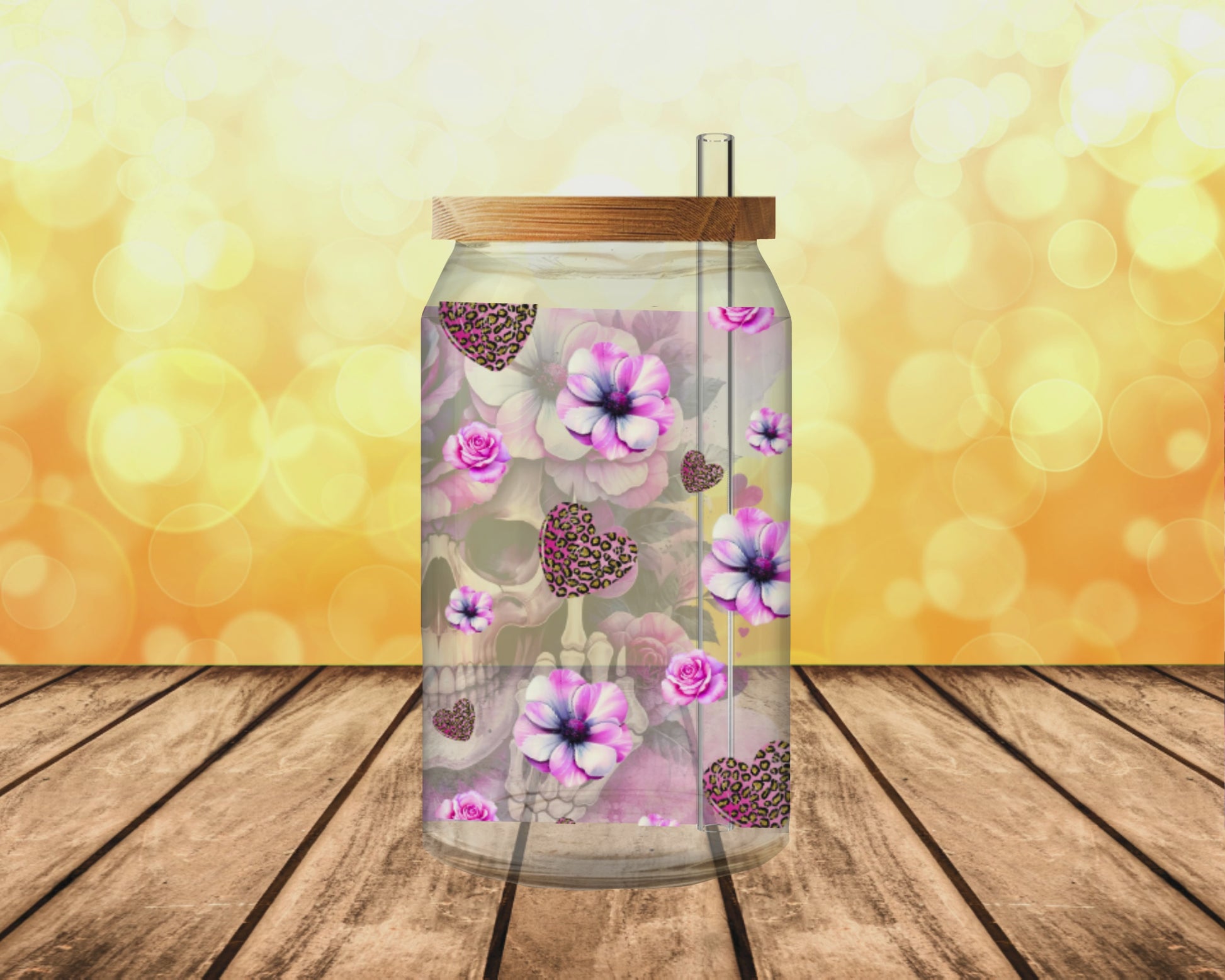 Das Glas kommt mit einem Bambusdeckel und einem Glasstrohhalm.